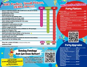 Give your kids a birthday they will never forget! We take all the hard work out of planning a birthday – from providing invitations to cleaning and setting up! Here at Kanga’s, we are all about the kids. We know that kids love snacks, so every party comes with classic favorites such as gummy bears, chips, and cheese puffs. We also like to keep every little belly happy by offering more than just pizza. You’ll be able to choose delicious entree’s from our party menu. Most importantly, the fun doesn’t stop after your 1.5 hours in your private party room is done. We have a reserved table just for your party near the playground for UNLIMITED PLAY all day long. They will never want to leave after they see our mechanical pirate ship swing, rock climbing wall, toddlers area, and ginormous multi-level playground. No one else in Houston parties as hard as we do and we can’t wait to see you there!